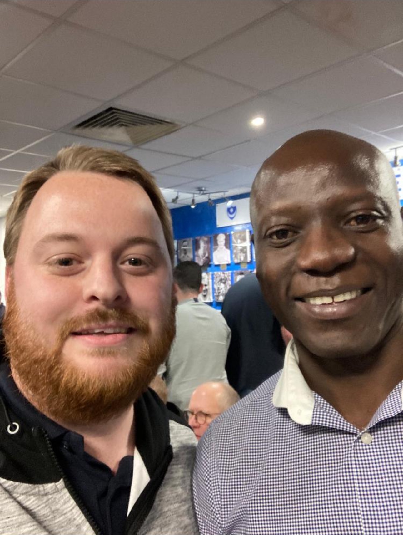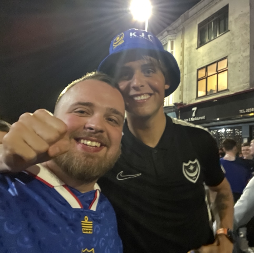Harry with the one and only Ryley Towler, outside O'Neils on the night Pompey won League One in